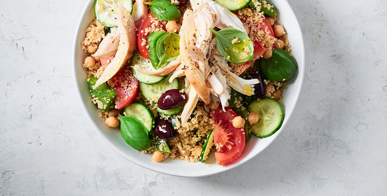 Taste our moroccan chicken couscous salad, topped with yoghurt dressing. Mediterranean chicken couscous salad, simple, and delicious light supper or lunch in a bowl, 243 calories, 4 ww freestyle smartpoints. 1⁄2 red onion, quartered and thinly sliced. 1 mediterranean cucumber, quartered and sliced. 100 g kalamata olives, stoned, drained and halved lengthways. This was made some time back, probably two years or three years back and then i couldn’t f. 130 g woolworths marinated chargrilled artichokes, sliced into 2 cm pieces. We love the texture of pearl couscous and find toasting it beforehand adds a delicious nutty flavour to this dish. Make a big batch and feast all week long. Need a quick, tasty and easy dinner for one?