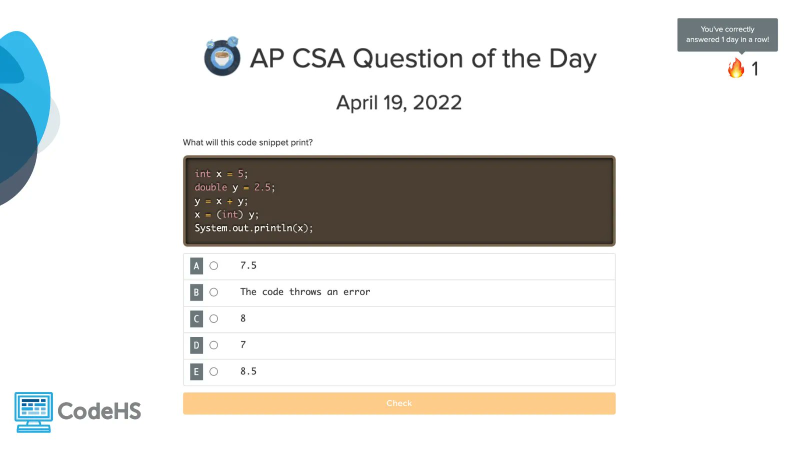 Codehs Is It Even Codehs Question Of The Day Is there a way to manage the question of the day so that the question will align with what students have learned. Try our new ap csa question of the day (qotd)! Questions can be completed without logging in, but if students choose to log in. Ap csa question of the day oct. The question of the day (qotd) is. Codehs Question Of The Day.