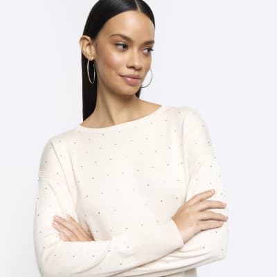 Cream diamante jumper River Island