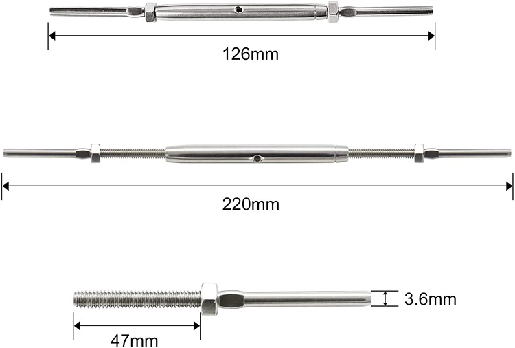 5/16'' Stainless Steel T316 Threaded Rod Swag Stud Turnbuckle 1/4 Threaded Rod Turnbuckle A turnbuckle is a device consisting of two threaded eye bolts, one on each end of a metal frame, which can be adjusted by turning the central body. A turnbuckle is a rigging device used to apply tension, adjust tension, and eliminate slack in cables, ropes, and other assemblies. 29 rows turnbuckles are provided as components of tie rod assemblies. Threaded Rod Turnbuckle.