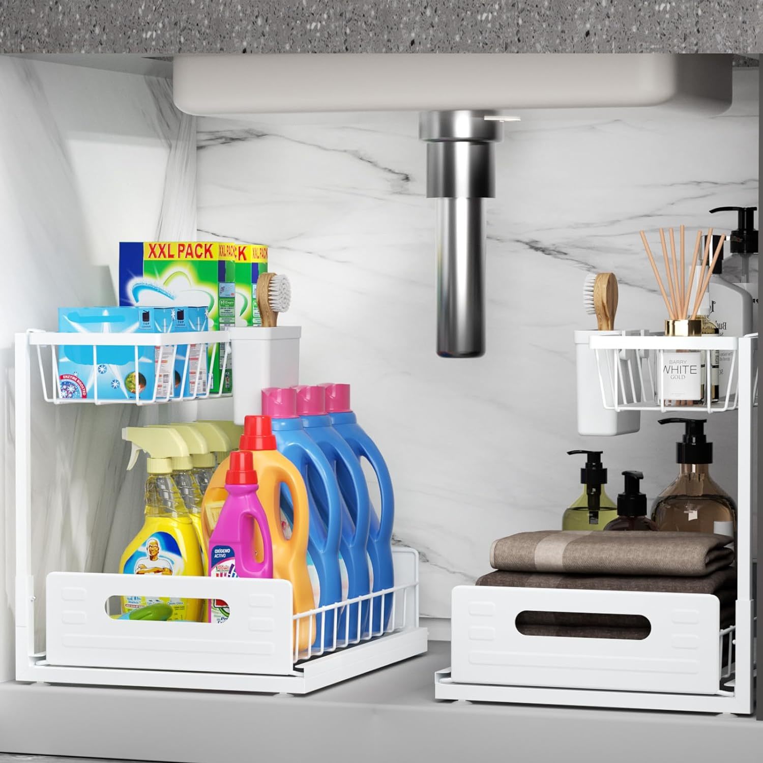 Buy Bukfen Under Sink Organizer, Pull Out Organizer 2Tier Under Bathroom Sink Storage Pull Out It has 4 holes on each side to adjust the height. Under sink organizers, 2 pack metal pull out under sink organizers and storage shelves with sliding drawer, under sink storage for kitchen,. Learn how to organize your bathroom sink storage with containers, drawers, bins, shelves and more. Shop wayfair for the best under sink pull out storage. Enjoy free. Under Bathroom Sink Storage Pull Out.