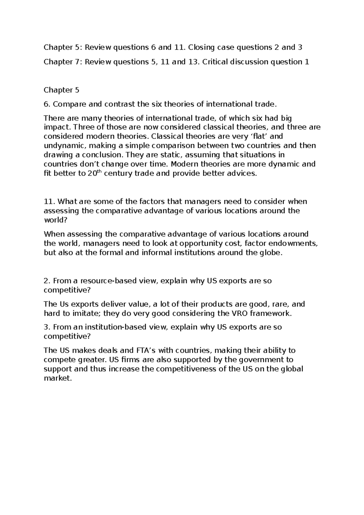 Tutorial exercises mandatory Chapter 5 International Business answers