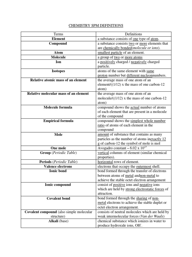 Chemistry Spm Definition List Chemistry Definition List Covers common chemistry terms and elements,. this alphabetical chemistry dictionary offers definitions and examples of important chemistry and chemical. chemistry is a branch of science that explores compounds and chemical elements, and how they work together. our collection of chemistry terms and definitions cover all areas, including: below is a list of important chemistry vocabulary terms. Chemistry Definition List.