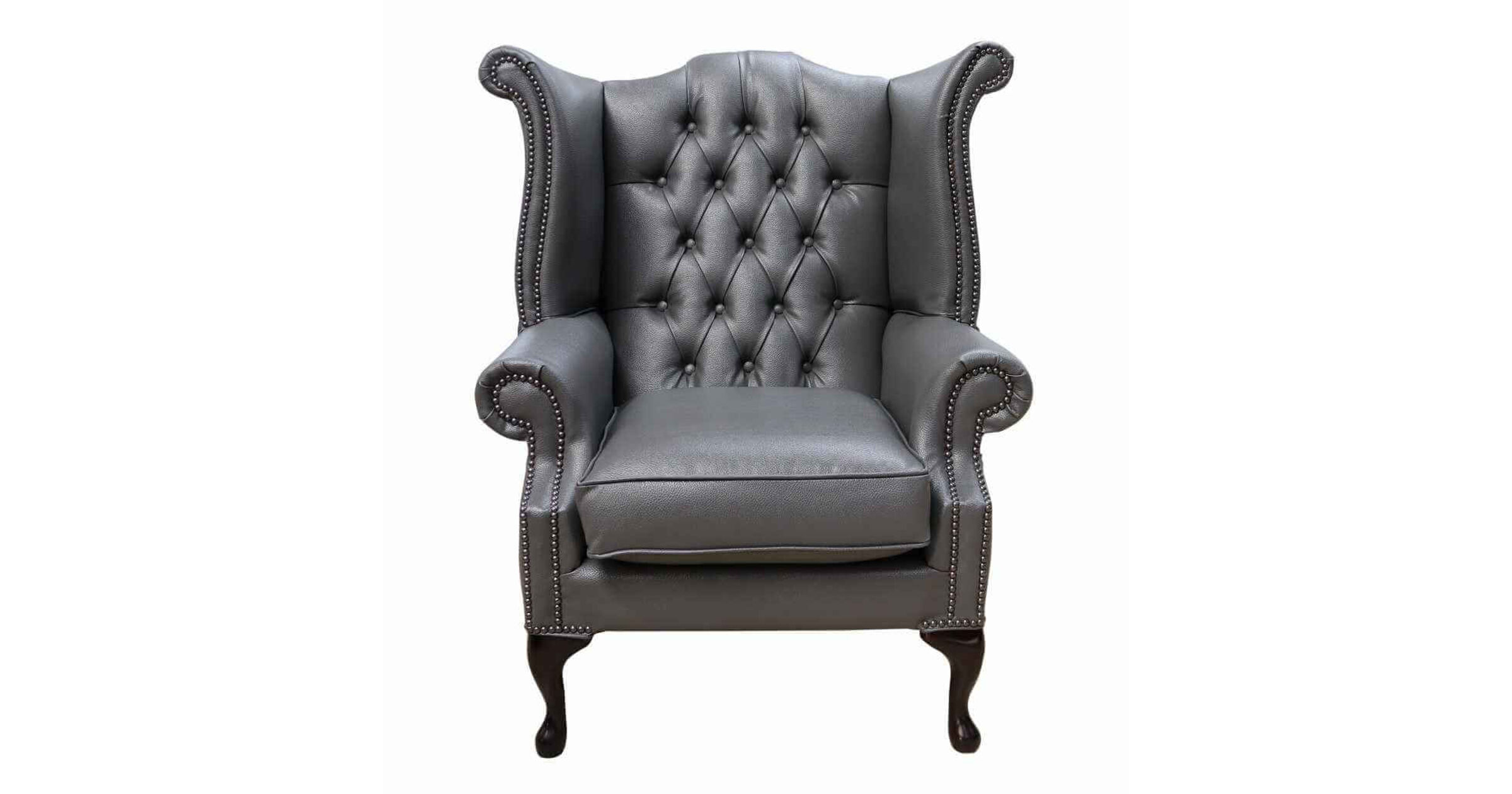Bonded Leather Grey Chesterfield Queen Anne Wing chair
