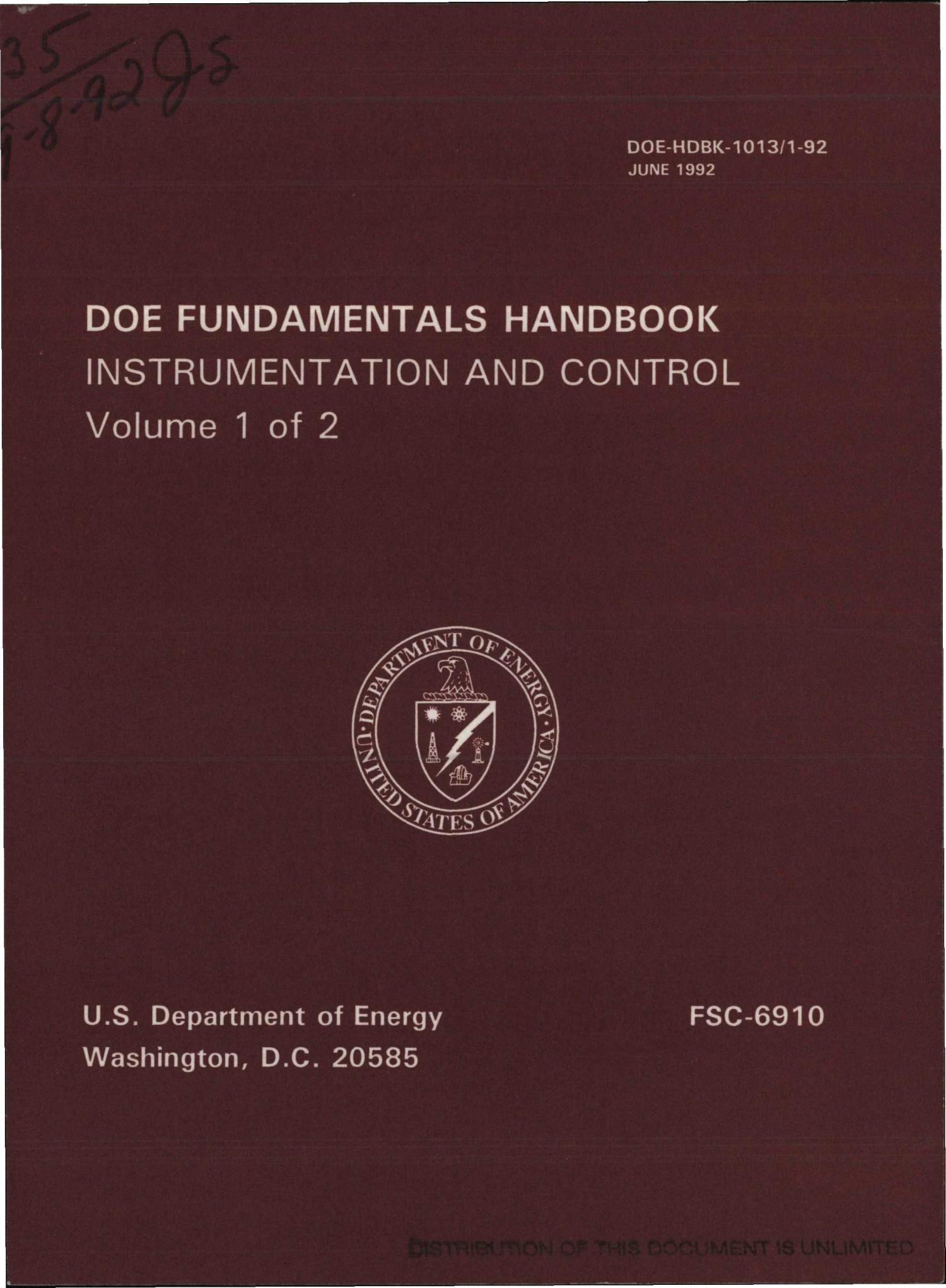DOE Fundamentals Handbook Instrumentation and Control, Volume 1 UNT