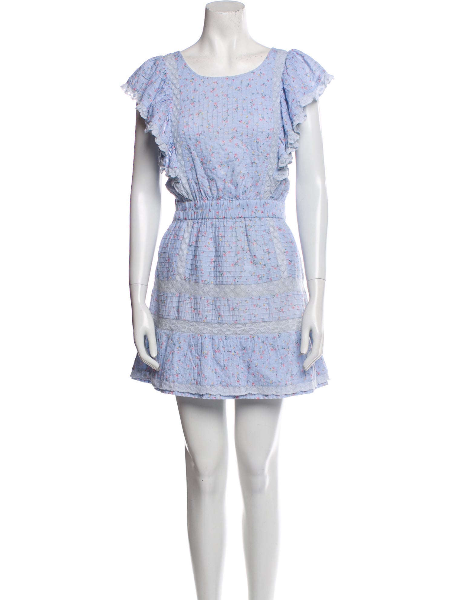 LoveShackFancy Floral Print Mini Dress Blue Dresses, Clothing