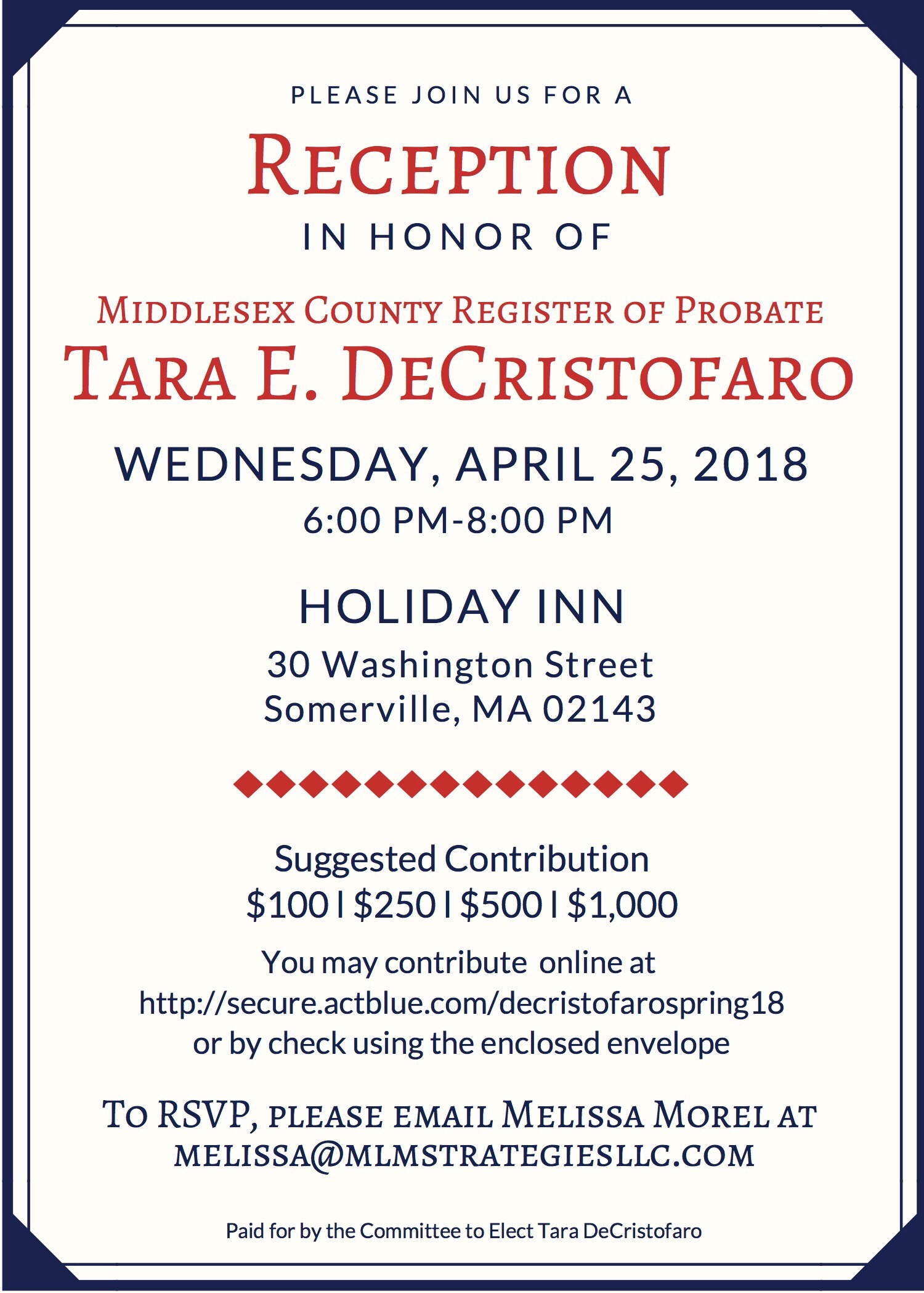 ReminderMiddlesex County Register of Probate Tara E. DeCristofaro
