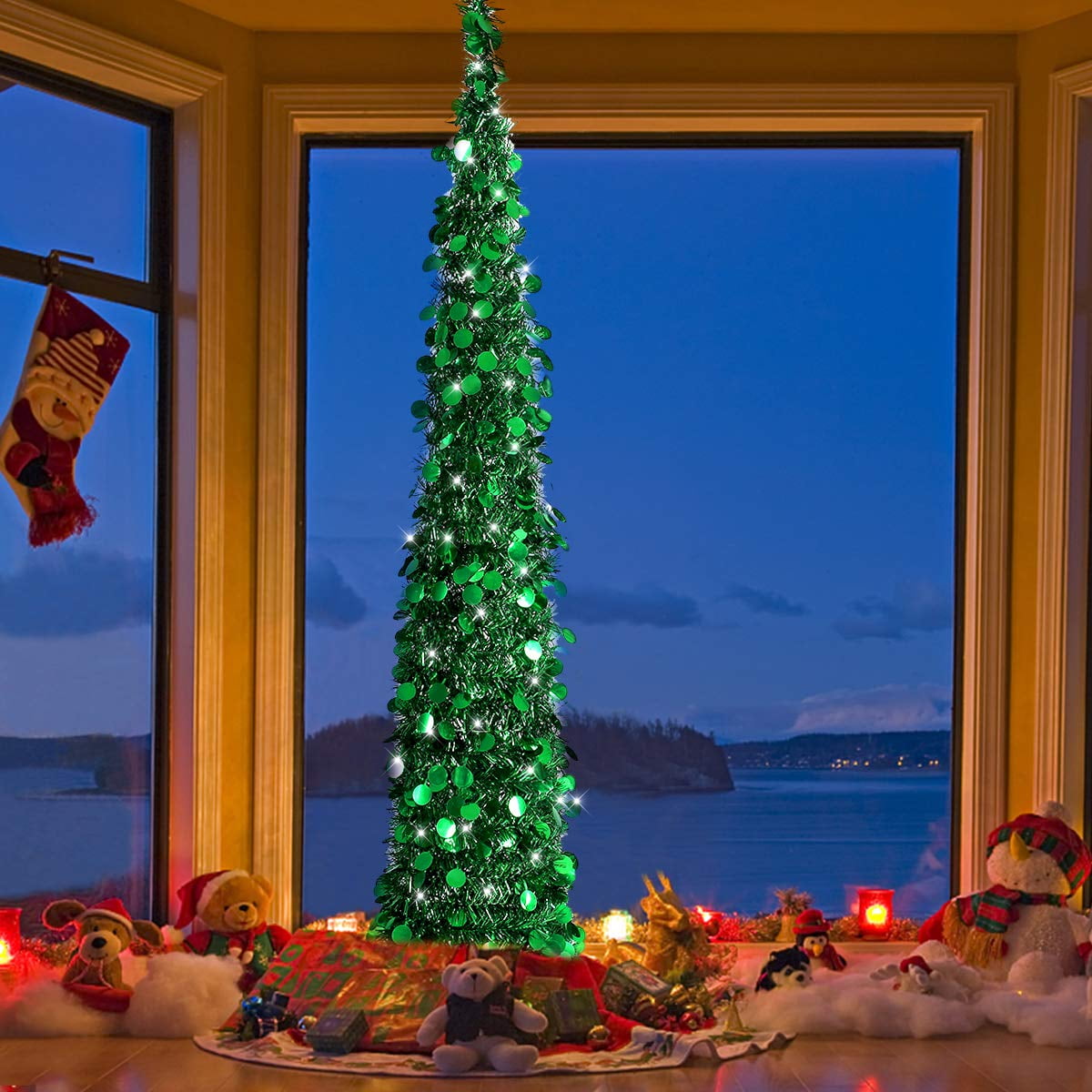 PartyTalk 5ft Pop Up Christmas Tree with Stand, Green Tinsel Collapsible Christmas Tree Collapsible christmas tree, 5 ft artificial xmas tinsel tree sequin decoration tree with support stand for christmas indoor outdoor holiday. 4/5 (51) Collapsible Christmas Tree.