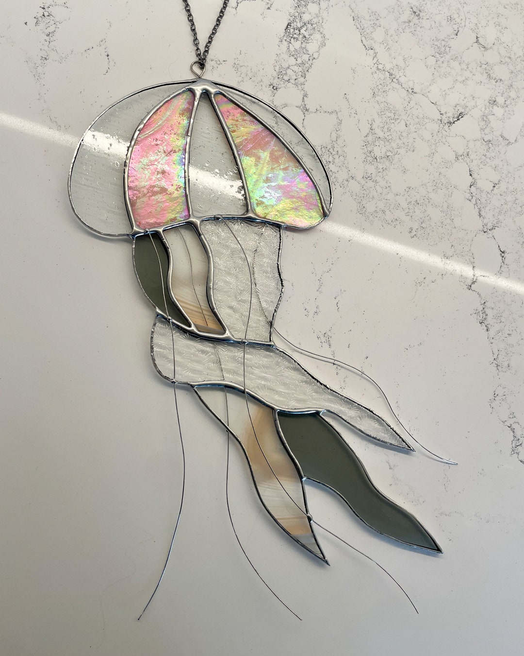 XL Stained Glass Jellyfish Jellyfish Suncatcher Modern Window Decor