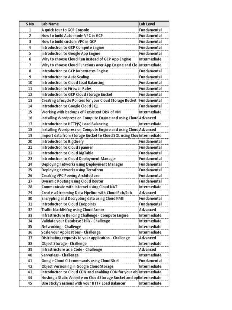 GCP Labs List PDF