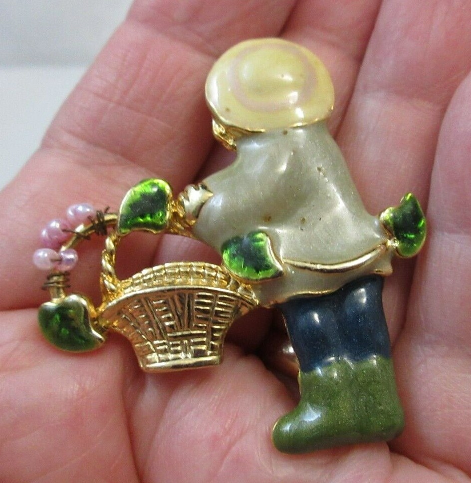 Vintage? Person? Carrying a Basket Brooch Pin Enamel … Gem