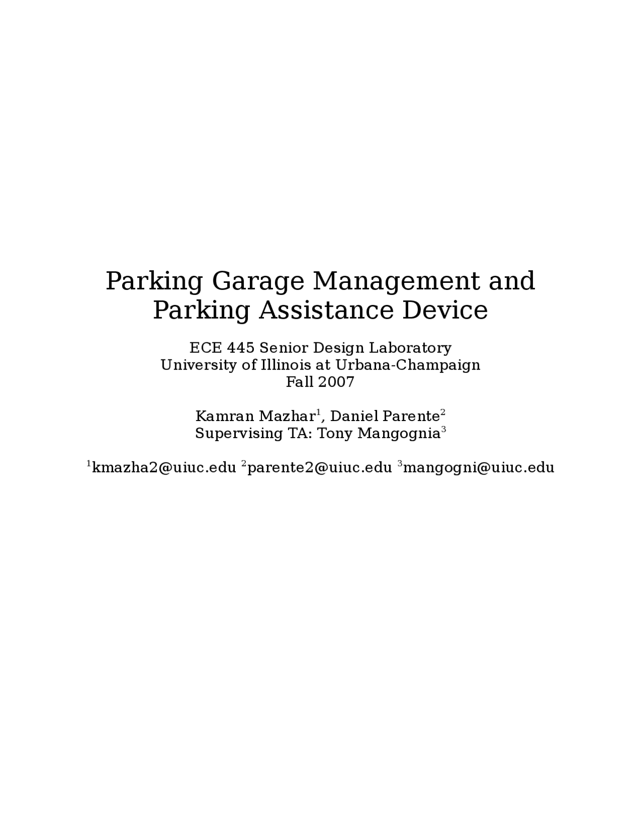 Parking Garage Management and Parking Assistance Device ECE 445 Docsity