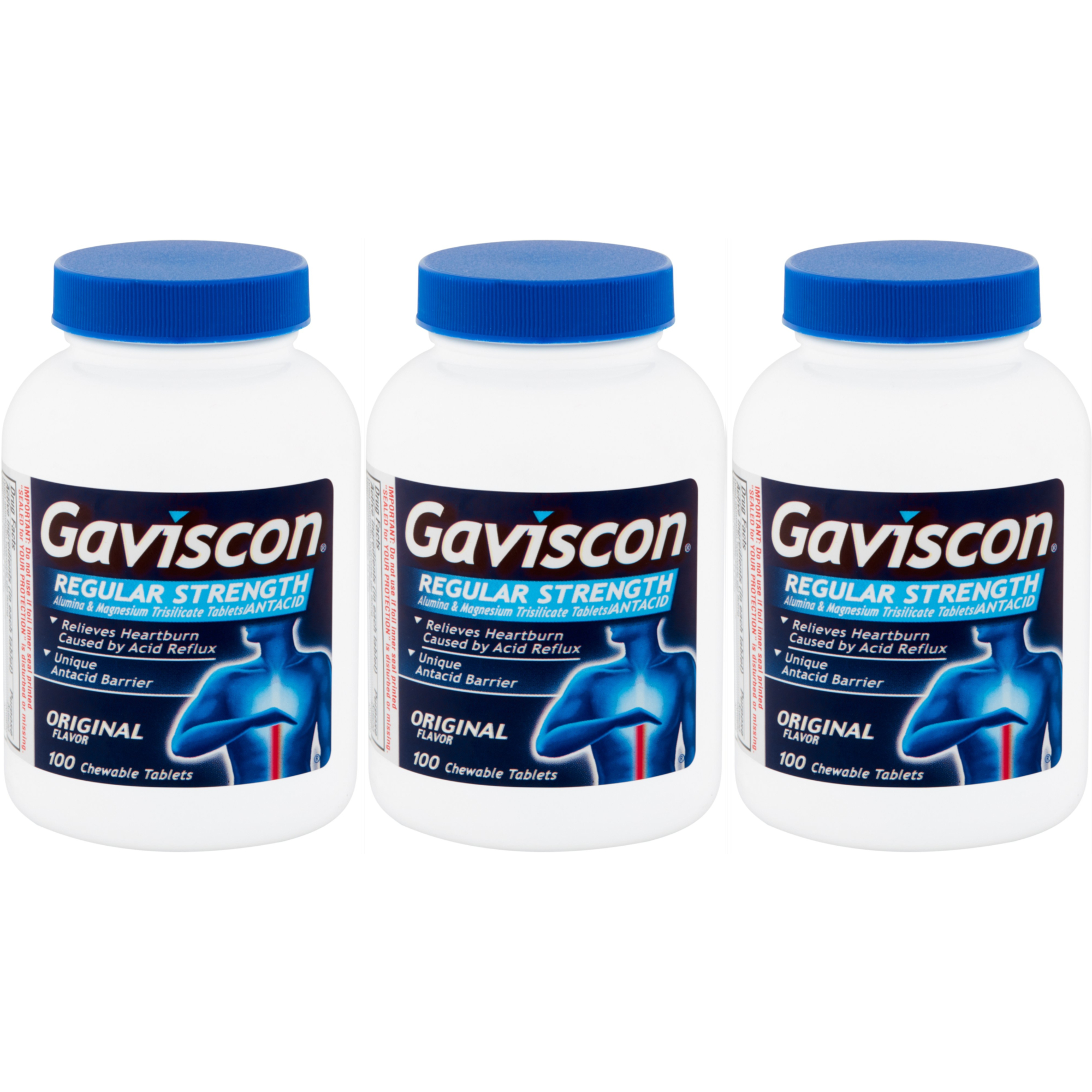 3 Pack Gaviscon Regular Strength Chewable Antacid Tablets 100 Ea