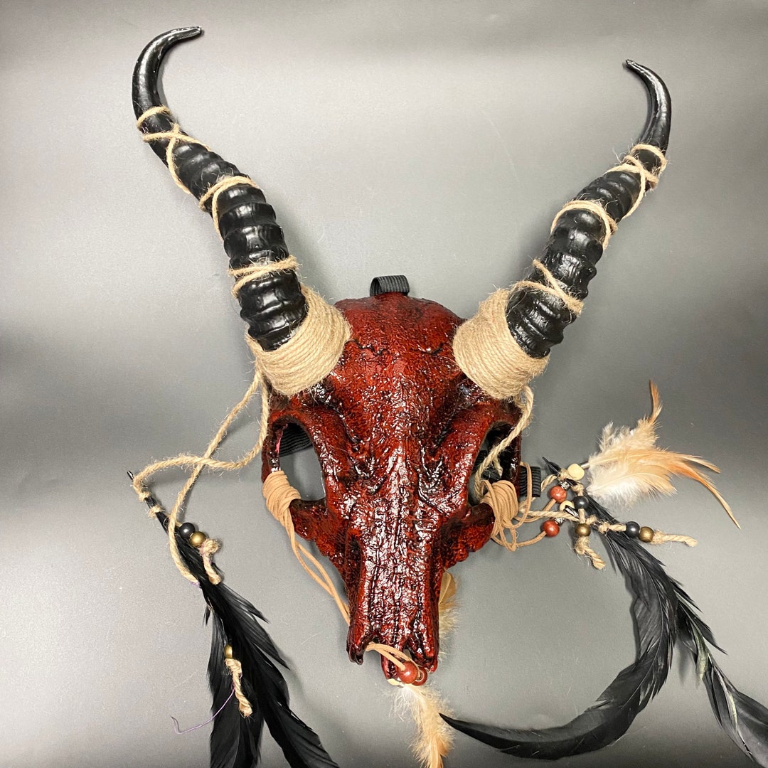 Outward Horns Ancestral Demon Skull Mask Red White Bone Wendigo Shaman