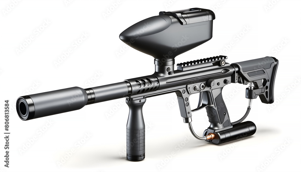 3D Paintball Gun Render, Paintball Marker with Hopper, Realistic