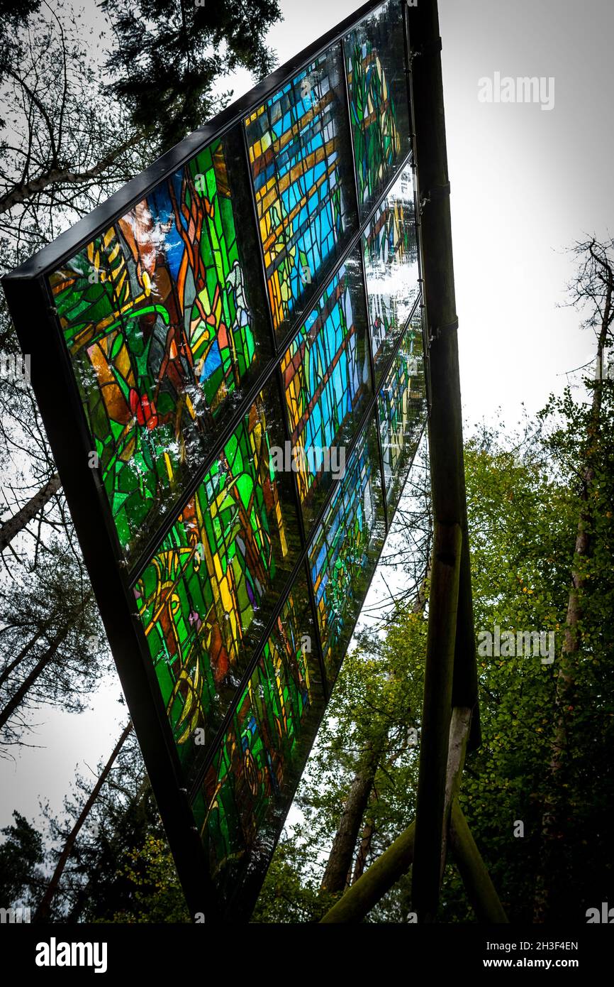 Cathedral, a stained glass installation by Kevin Atherton. Forest of