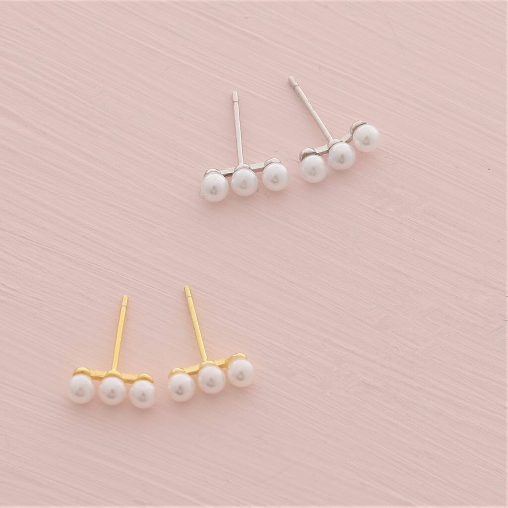 sterling silver three pearls studs earrings by attic