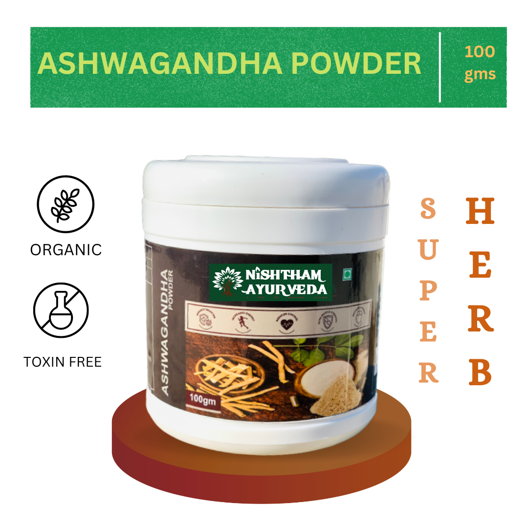 Buy Online ORGANIC ASHWAGANDHA POWDER 100gm Nishtham Ayurveda