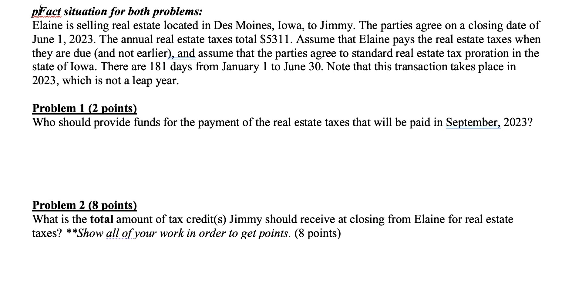 pFact situation for both problems Elaine is selling