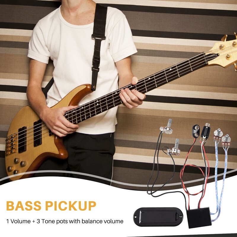 2 Band Active Bass Guitar EQ Equalizer Preamp Circuit Pickup Black