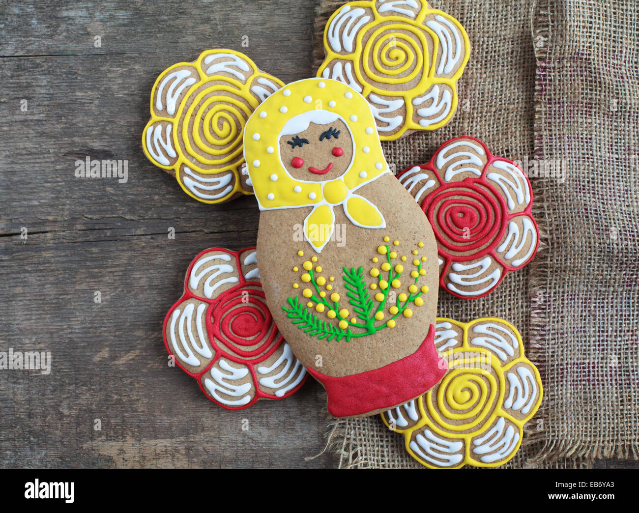 Edible homemade gingerbread as a traditional Russian nesting dolls