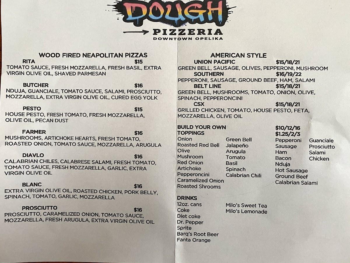 Menu at Dough Pizzeria, Opelika