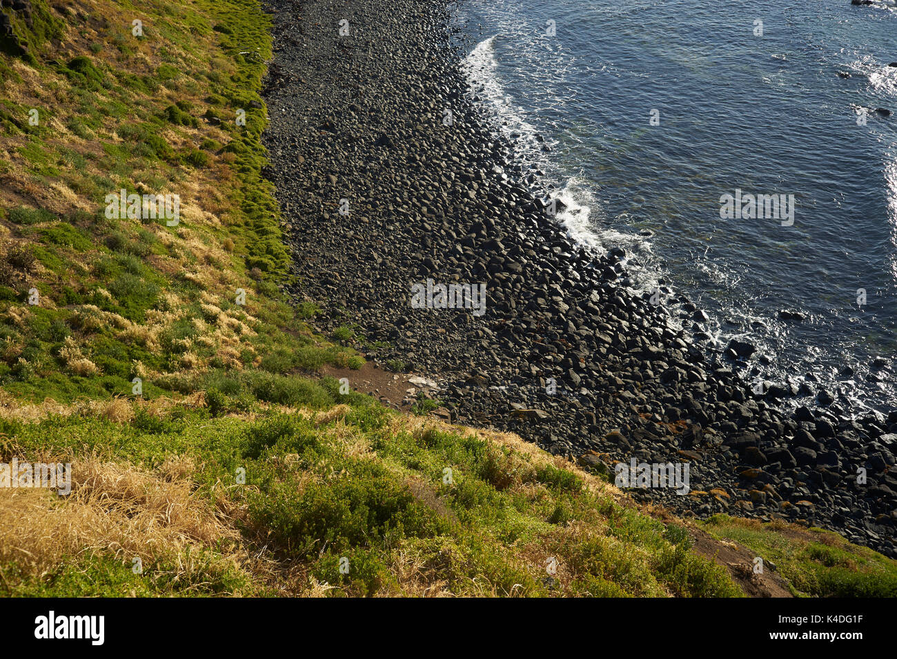 Transition from grass to stones to water Stock Photo Alamy