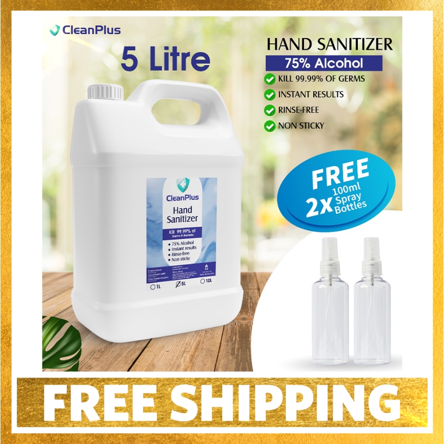 5 Litre Clean Plus Hand Sanitizer 75 Alcohol +FREE 2x100ML Empty Spray