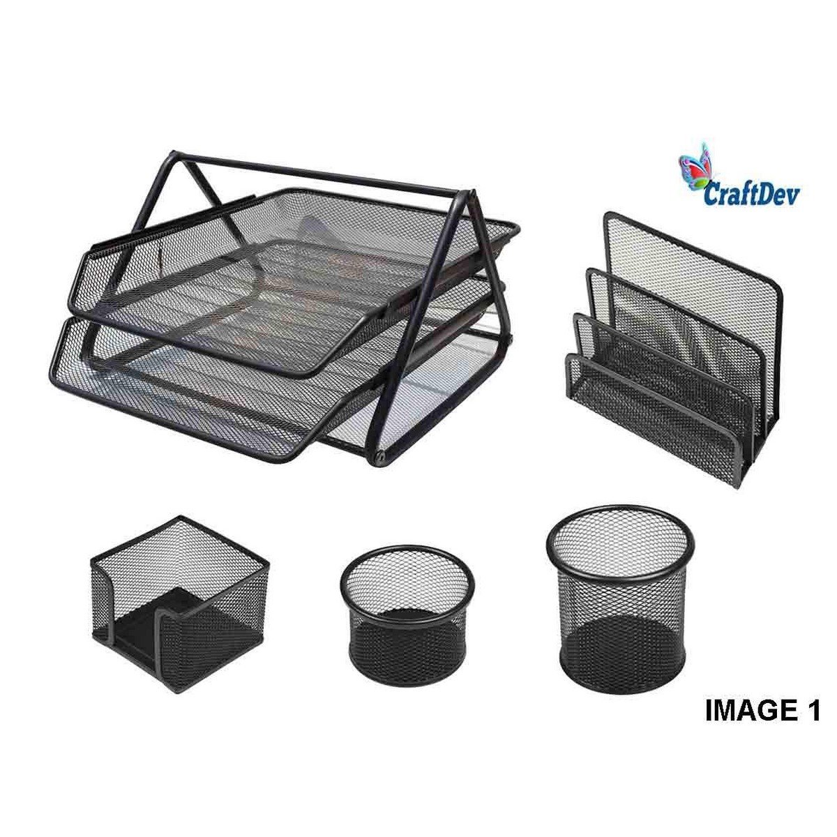 Office Stationery Desk Organizer Metal Mash Set Of 5