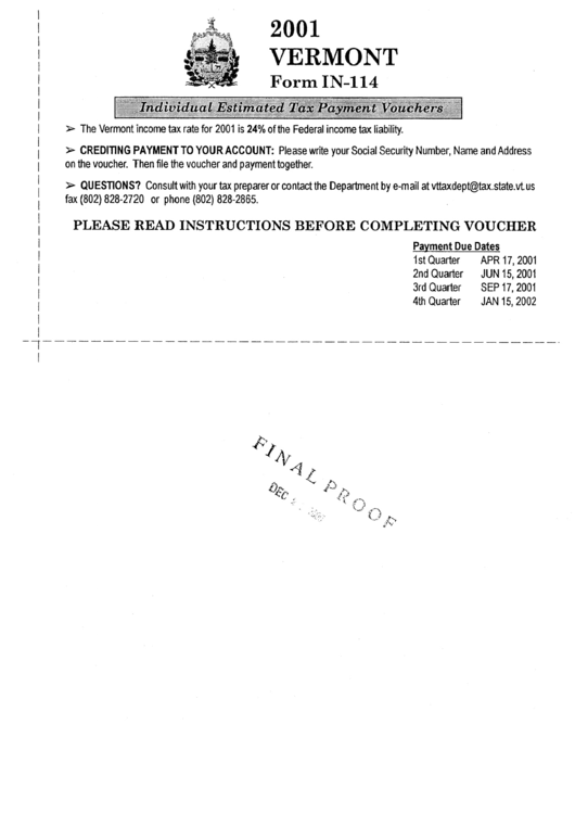 Form In114 Individual Estimated Tax Payment Vouchers With Where To Get Estimated Tax Vouchers The instructions are included in this pdf. We last updated the estimated tax for individuals in january 2024, so. Estimated tax is the method used to pay tax on income that is not subject to. Estimated tax payments must be sent to the irs on a quarterly basis. Pay in cash at certain irs retail partners. You can also use. Where To Get Estimated Tax Vouchers.
