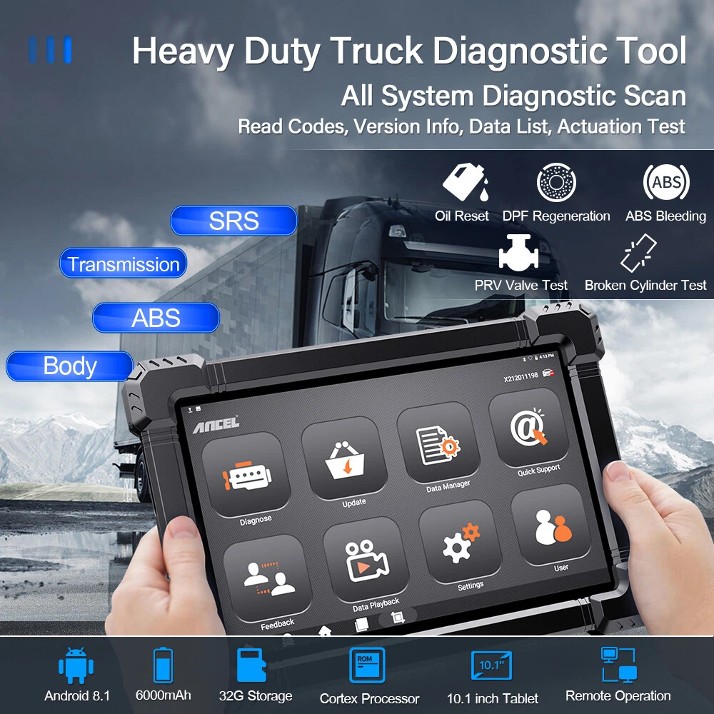 Buy Autel Maxisys CV MS908CV, Heavy Duty Truck Scanner, Semi Truck Bluetooth Heavy Duty Truck Scanner Ancel hd100 bluetooth heavy duty truck scanner dpf regeneration compatible for cummins caterpillar diagnostic Buy ancel hd100pro bluetooth heavy duty truck scanner, full system diesel scanner diagnostic tool, dpf force regen & reset for. Designed for full system diagnostics. The hd pro tab is three years in the making, with. Unlock the ultimate vehicle diagnostics with the ancel hd110 bluetooth. Bluetooth Heavy Duty Truck Scanner.