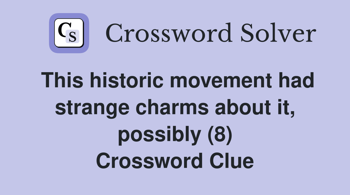 This historic movement had strange charms about it, possibly (8 Charm Or Allure Crossword Clue Here is the answer for the crossword clue charm and allure (7). Here is the answer for the crossword clue alluring charm and fascination last seen in mirror classic puzzle. The crossword solver found 30 answers to charm and allure (6), 7 letters crossword clue. Our best crossword lexicon answer is: This clue was last seen on 25 july 2023. Charm Or Allure Crossword Clue.