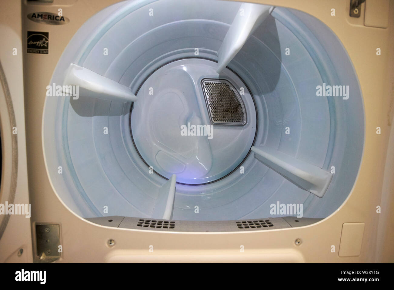 empty drum of a tumble dryer in the laundry room of a home in the USA