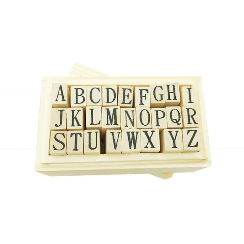 1 PC Alphabet Stamps Set Rubber Retro Wooden 26 Pieces Alphabet Stamps