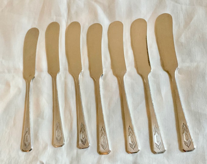 Seven Silver Plate Butter Knives, Set of 7 Individual Flat Butter