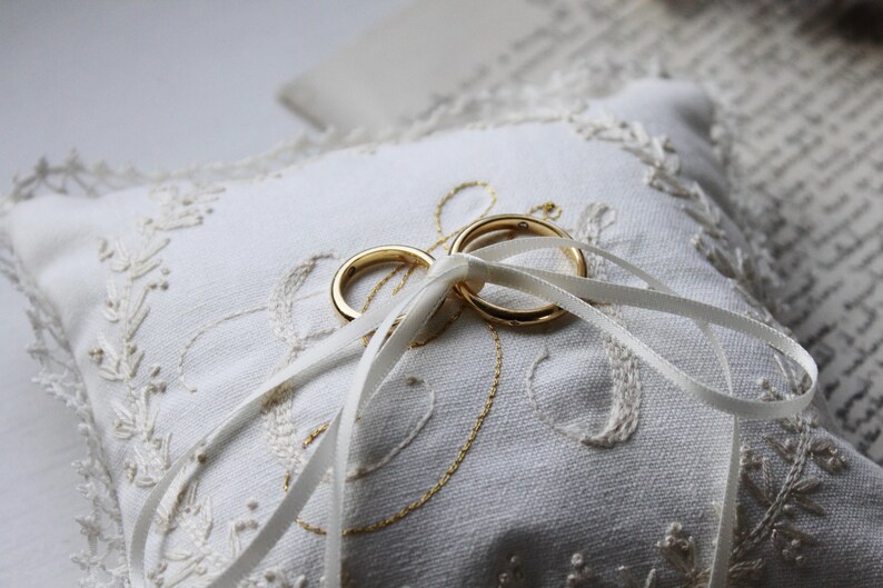 Hand Embroidered Monogrammed Ring Pillow / Baby's First Etsy Monogrammed Ring Pillows Custom embroidered ring bearer pillow monogramed with your wedding colors. This gorgeous pillow comes with a ribbon to attach the rings. Add comfort and transform any couch, bed or chair. Our monogrammed ring bearer pillow is the perfect keepsake for your wedding. Includes a beautiful ribbon to securely tie up the rings, ensuring their safekeeping and adding an elegant touch.. Monogrammed Ring Pillows.