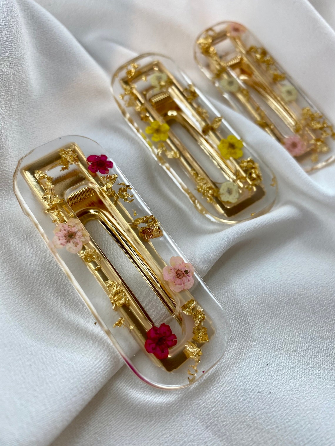Resin hair clips hairclips gold leaf with flowers influencer Etsy