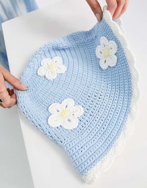 ASOS DESIGN crochet bucket hat with daisy embroidery in blue ASOS