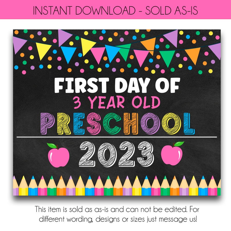 First Day of 3 Year Old Preschool Sign Instant Download First Etsy First Day Of 3 Year Old Preschool Sign Looking for an easy craft for back to school season? Check out our 3 year old preschool sign first day of school selection for the very best in unique or custom, handmade pieces from our shops. Check out our first day of preschool sign selection for the very best in unique or custom, handmade pieces from our signs shops. Print,. First Day Of 3 Year Old Preschool Sign.