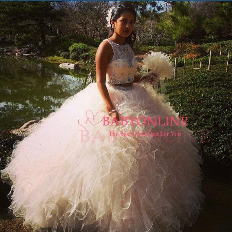 2016 Two Pieces Blush Pink Quinceanera Dresses Beaded Crystals