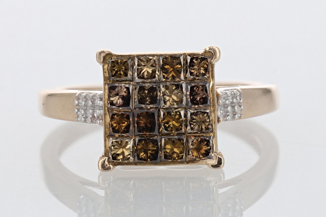 .97ctw Princess Cut Brown Diamond Cluster Statement Ring 10k Rose Gold