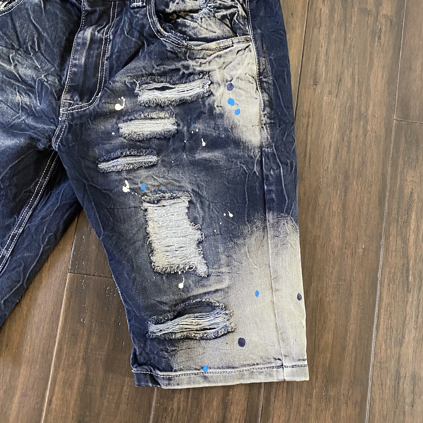 DECIBEL Blue Denim Paint Splatter Distressed Zip Fly … Gem
