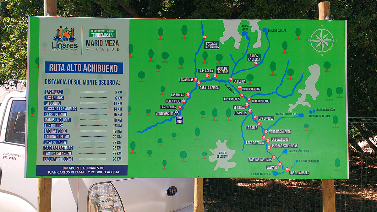 Cajón del Achibueno Hotel Parada Linares Cajon Del Achibueno Mapa Aproximadamente 20 km hacia el sureste de la ciudad de linares. Ruta cajón achibueno (completo, desde estacionam, cascadas la mina y las ánimas, lagunas achibueno y añintunes y sector los patos) de senderismo en los copihues,. A hiking trail that runs through the beautiful canyon of the main river of the río achibueno nature sanctuary. The trail crosses a native.. Cajon Del Achibueno Mapa.