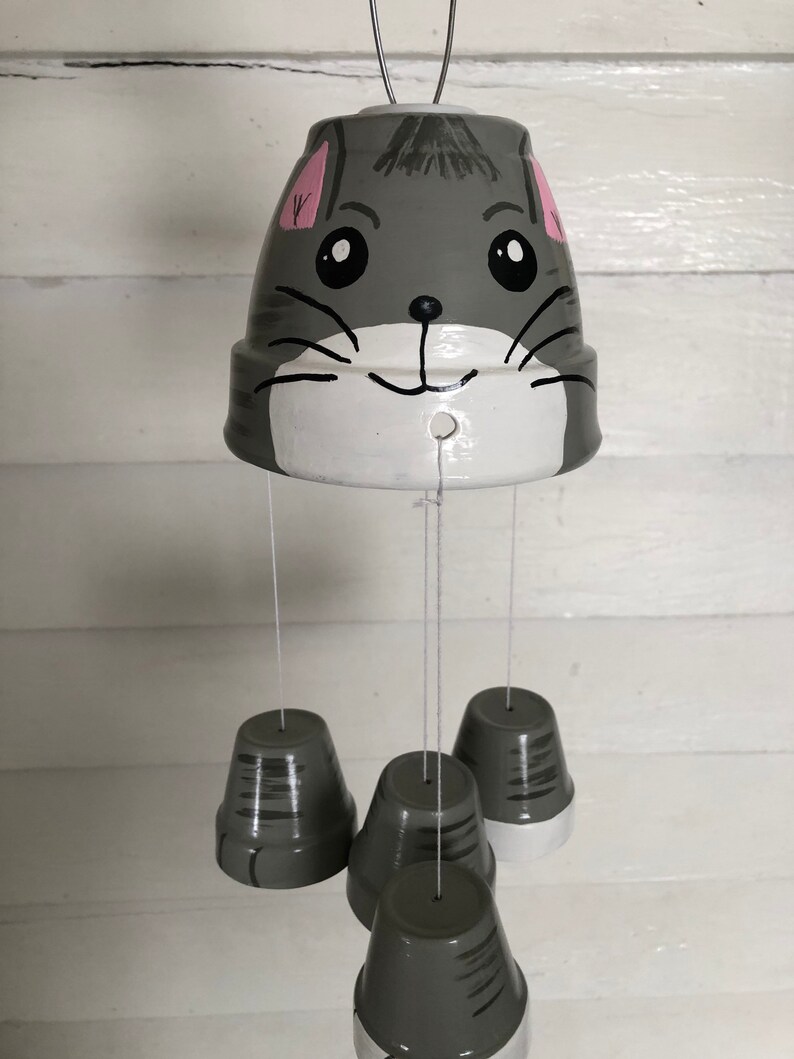 Hand Painted Wind Chimes/ Clay Pot Wind Chimes/ Happy Kitty Etsy