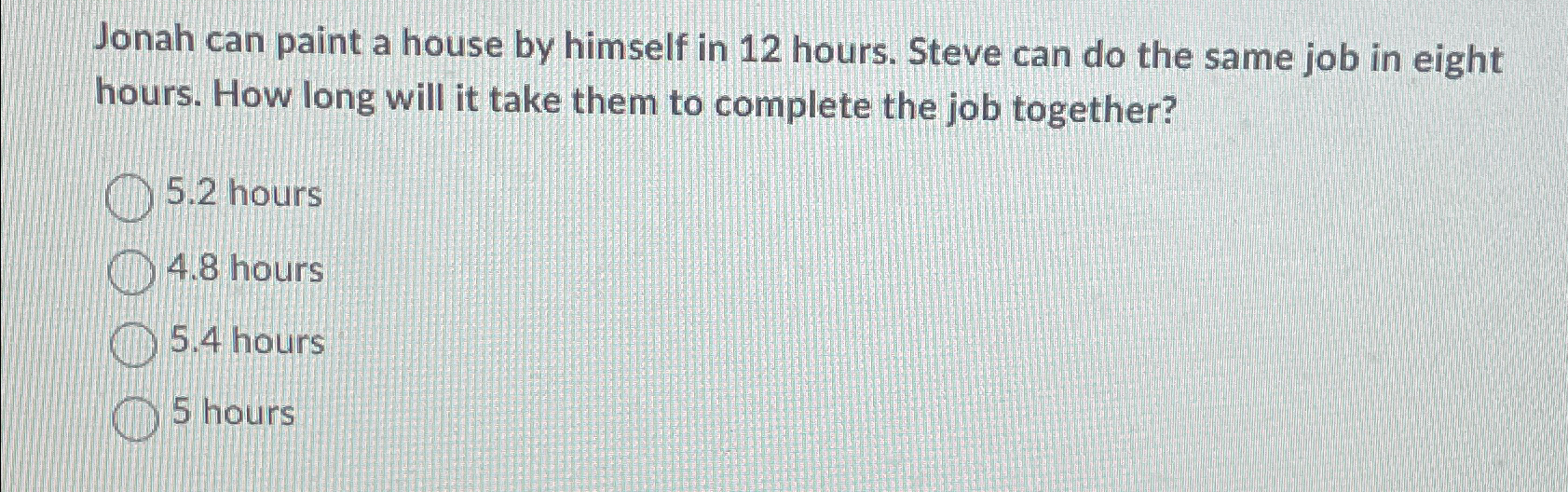 Solved Problem Pedro can paint a house alone in 8 hours. Jose can Jean Can Paint A House In 10 Hours Alex can paint the same house in 8 hours. If sean begins the job and does 3 1 of it and then dan takes. Enter an equation that can be used to find the. Jane and mark can paint a house together in 6 hours. If sally can paint a house in 4 hours, and john can paint the same. Jean Can Paint A House In 10 Hours.