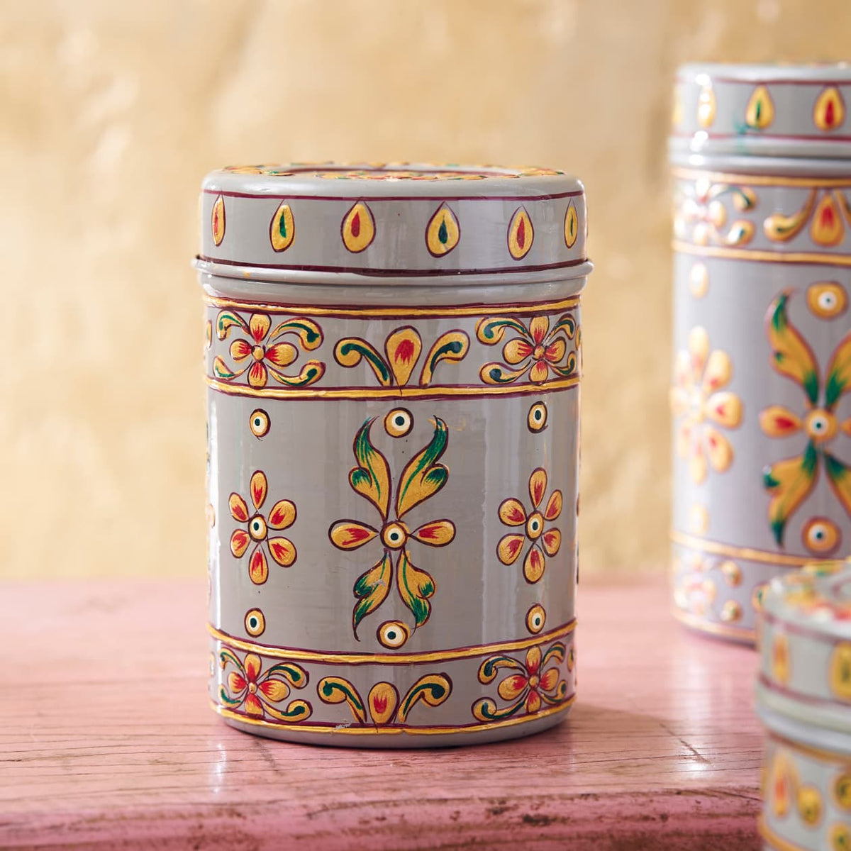 Kitchen Storage Steel Containers Grey Flower Pattern Mytri Designs