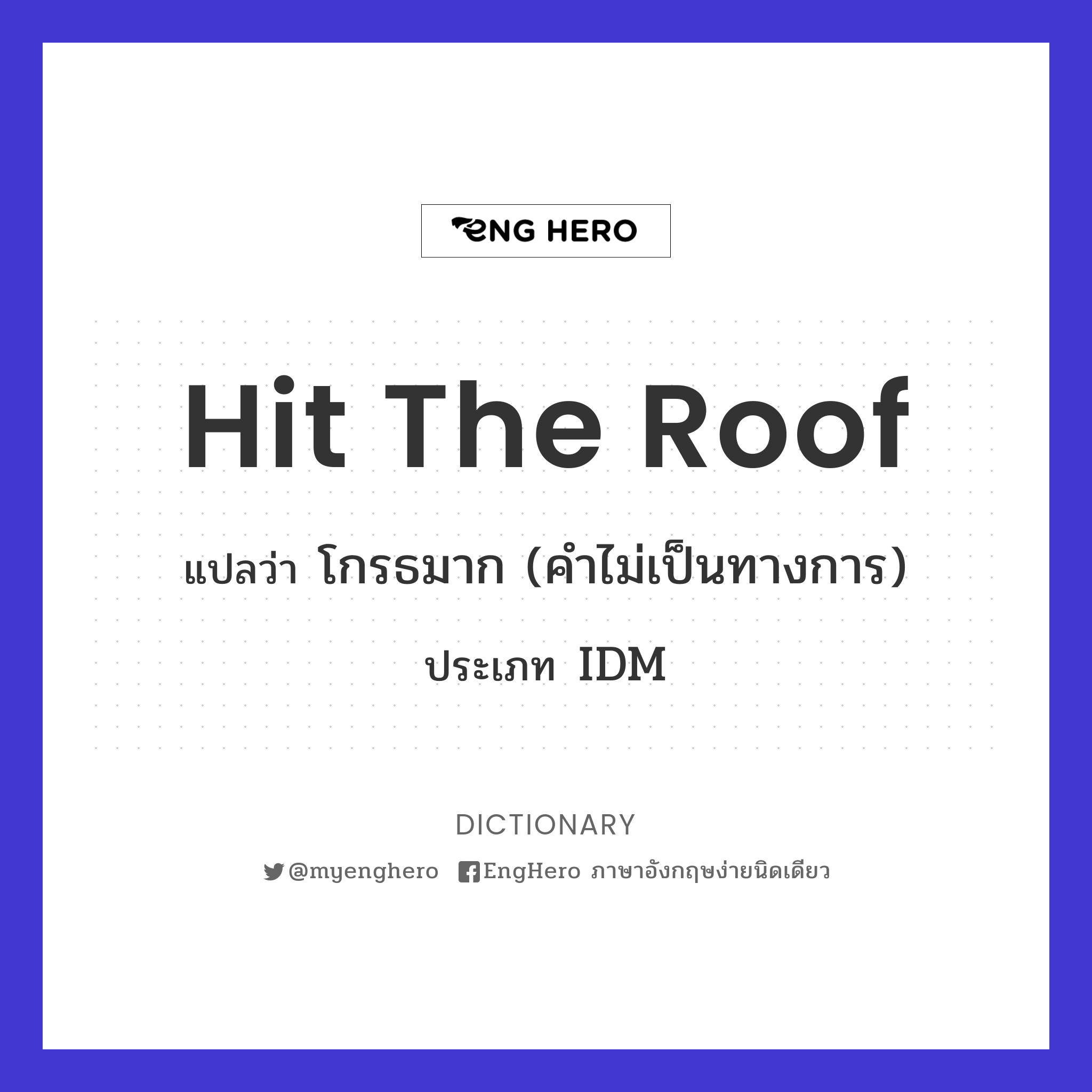 Hit The Roof แปลว่า โกรธมาก (คำไม่เป็นทางการ) Eng Hero เรียนภาษา