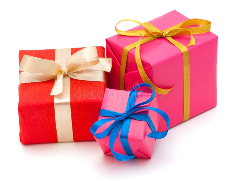 Gift Boxes with Satin Ribbons Isolated Stock Photo Image of ribbon