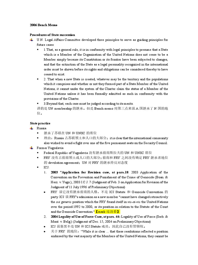 2006 Bench Memo Procedures of State Succession PDF United Nations