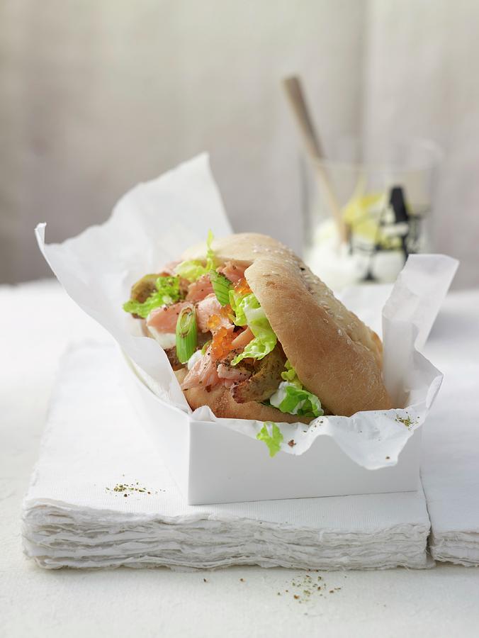 A Bread Pocket Filled With Salmon Trout Fillet And Lemon Sour Cream Photograph by Janpeter